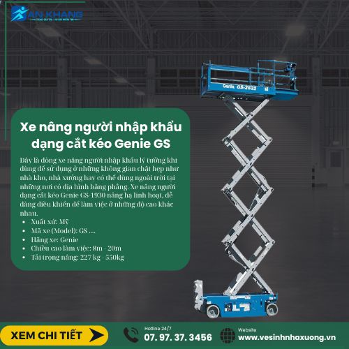 Xe nâng người cắt kéo (tiếng anh là Scissor Lift) là loại xe nâng người có thiết kế khá nhỏ gọn, dùng để làm những công việc trên cao thay thế cho thang hay dàn giáo cồng kềnh, có chiều cao làm việc trung bình khoảng từ 4m đến 20m.